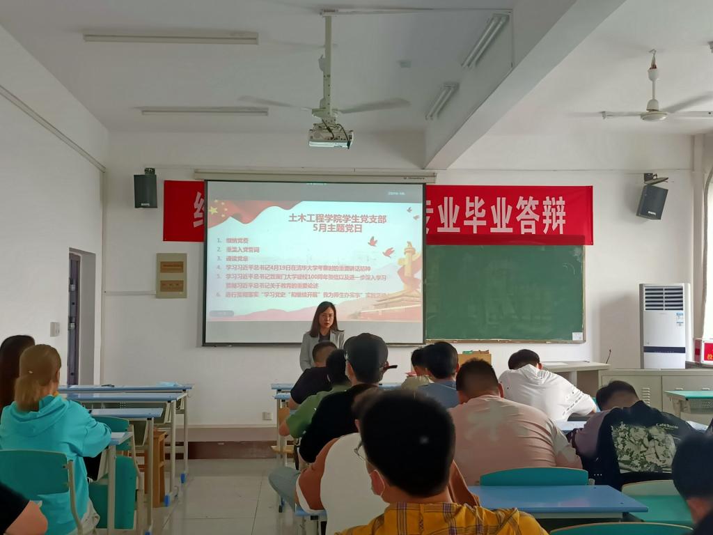 按照主题党日的要求,会上依次进行交纳党费,重温入党誓词,集体诵读党章的活动。随后由叶婵老师带领全体党员学习习近平总书记4月19日在清华大学考察时的讲话精神、致厦门大学建校100周年贺信以及进一步深入学习贯彻习近平总书记关于教育的重要论述;贯彻落实“学习党史”和继续开展“我为师生办实事”实践活动。