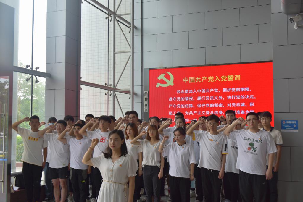 最后,由员工党支部书记叶婵老师在天工楼一楼大厅组织举行新党员入党宣誓仪式和老党员重温入党誓词活动。