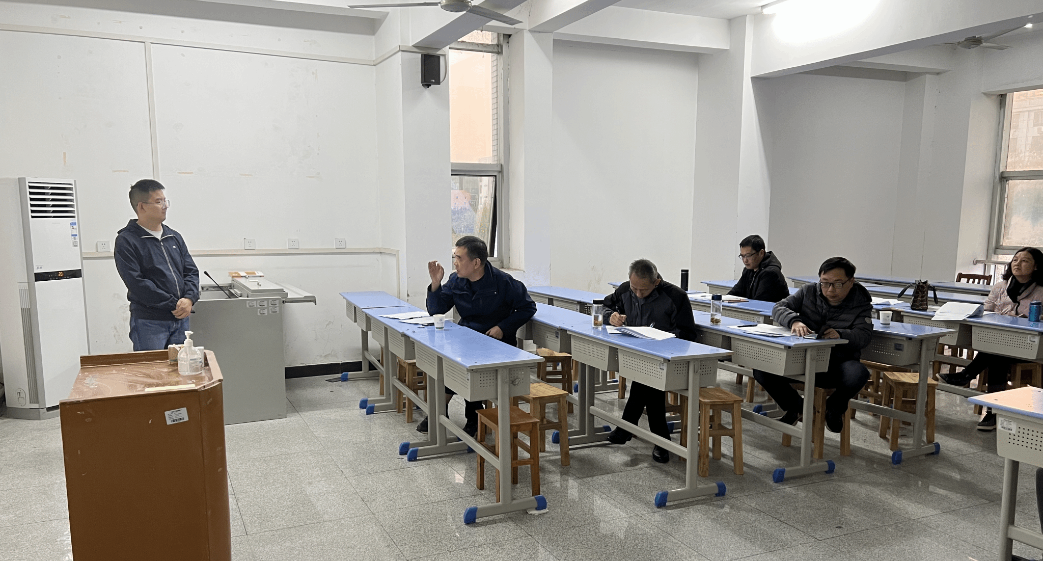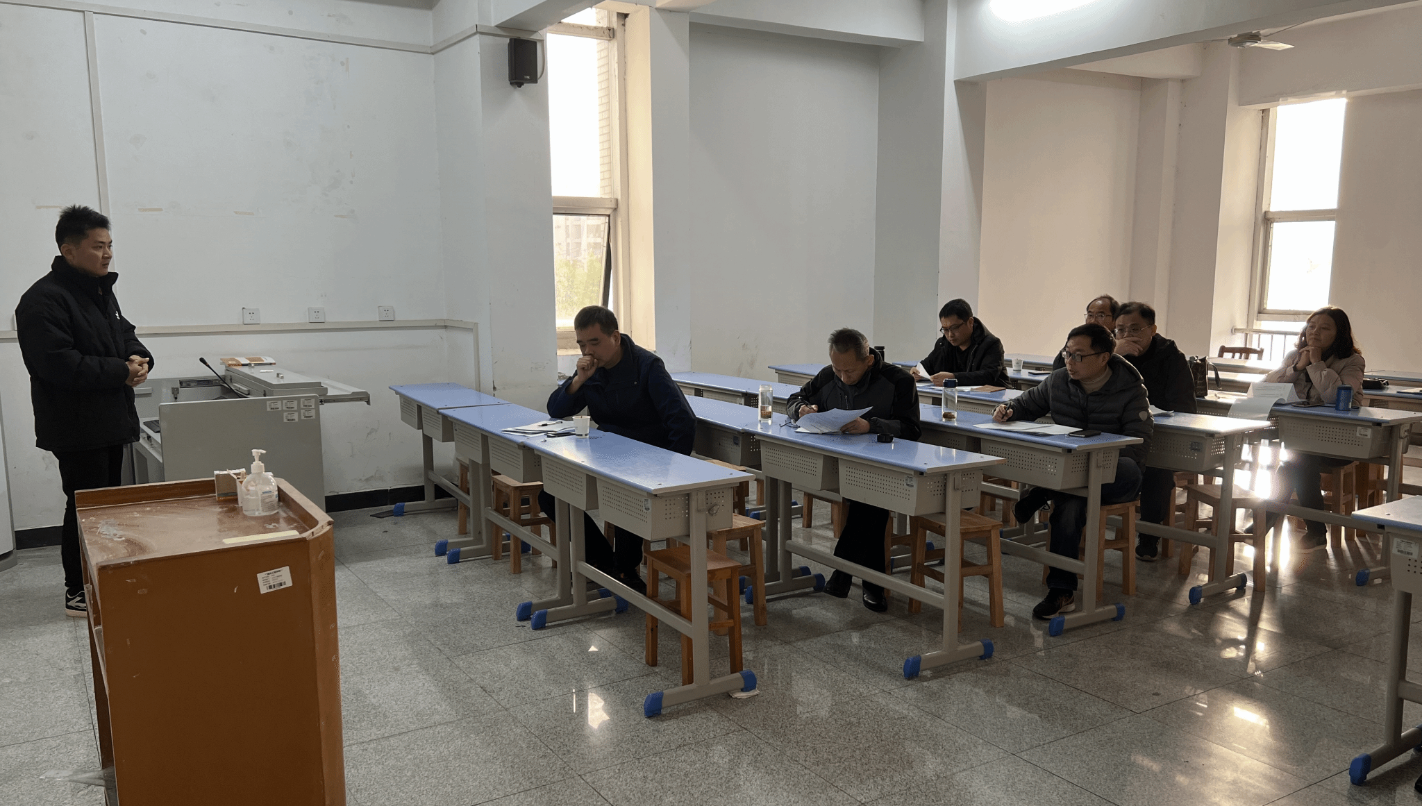 为落实新进教师助教岗位培养计划,促进新教师更好更快地进入角色;办好公司青年教师成长沙龙常态化交流活动,促进青年教师成长交流,持续提升青年教师教学质量。在公司教师教学发展中心统一组织下,公司于11月16日对本学期助教岗位培训新进教师开展中期课堂演练并进行青年教师成长交流。本次活动,邓庆、刘继芝娴、刘明盟、彭志雄、张世斌五位新进教师参加,公司督导主任李峻峰老师主持,邀请校级督导余胜平老师,副经理郭波、刘伟静,以及张庆芳、刘进军、陈军权、李军、李青五位老师担任评委。