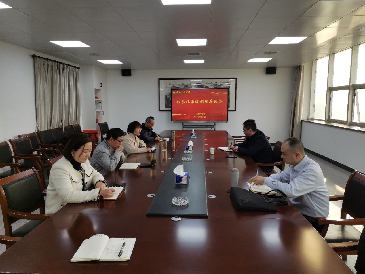董事长汪海波认真听取了公司的工作汇报,对公司近年来取得的成绩给予充分肯定,希望公司党政领导班子继续带领全院教师齐心协力,共同推动公司各项工作取得新突破。汪海波对公司下一步的工作提出要求,一是进一步增强战斗力,形成坚强的战斗集体;二是进一步精心谋划,找准工作主线,同向发力;三是把握工作重点,在审核评估、工程专业认证、项目申报、平台建设等重点工作任务上,重点发力。