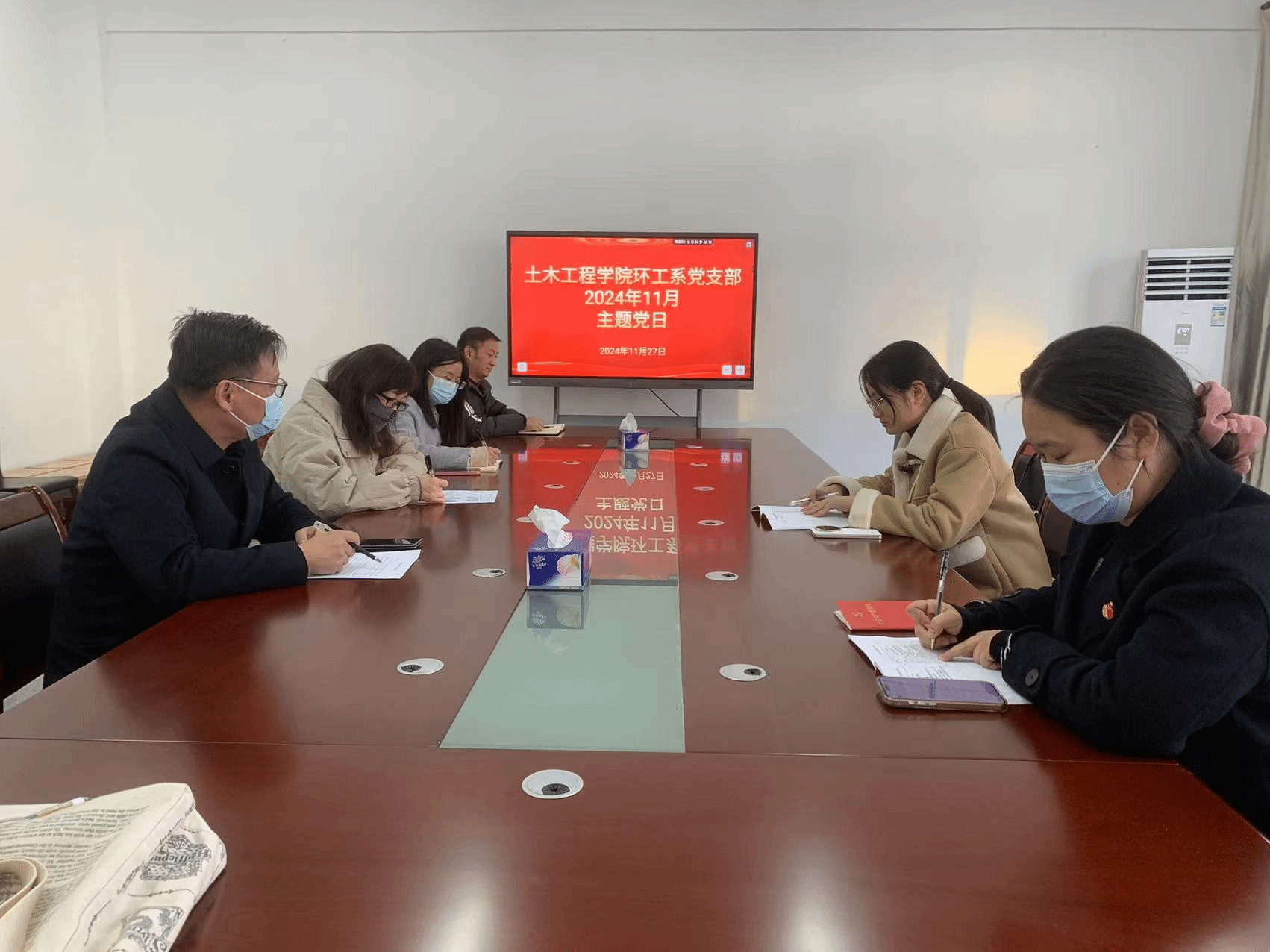11月26日下午,WilliamHill体育土木工程系、工程造价系和环境工程系教工党支部分别在天工楼404、天工楼411和天工楼321同时召开了11月份主题党日活动,会议分别由各系基层党支部书记主持,各系部全体党员教师参会。
