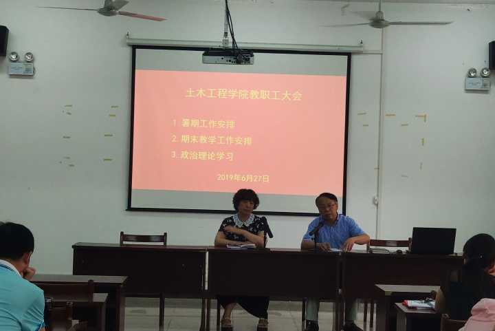 2019年6月27日下午,WilliamHill体育教职工大会在天工楼504召开,会议由党总支书记童友枝主持。