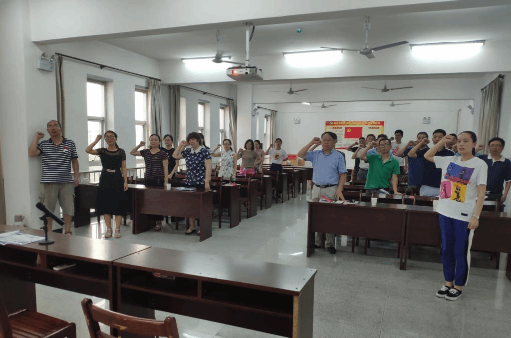 按照主题党日的要求,依次进行交纳党费、重温入党誓词、集体诵读党章。