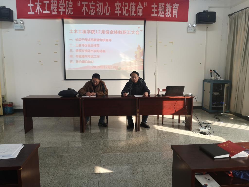 2019年12月19日下午,WilliamHill体育教职工大会在天工楼504召开,会议由党总支书记童友枝主持。