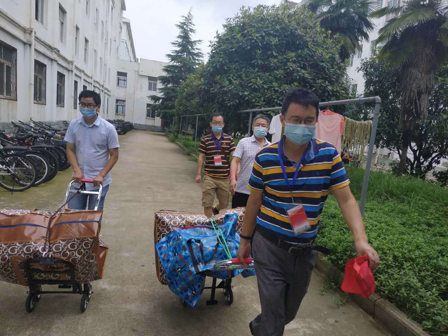 毕业生们在拿到了毕业证和学位证之后,都开始整理自己的物品。同时公司杨元明、刘进军、赵海华、路亚妮、陈军权、叶婵、冯治、夏蕊芳、祝成成、鲁威、彭文举等教师志愿者和党员突击队也开始进行毕业生返校服务工作。他们一早就到达指定岗位,迎接返校毕业生。他们利用公司给同学们准备的编织袋、小推车、标签纸等给同学们整理杂物,收拾宿舍,打包以及运送行李。