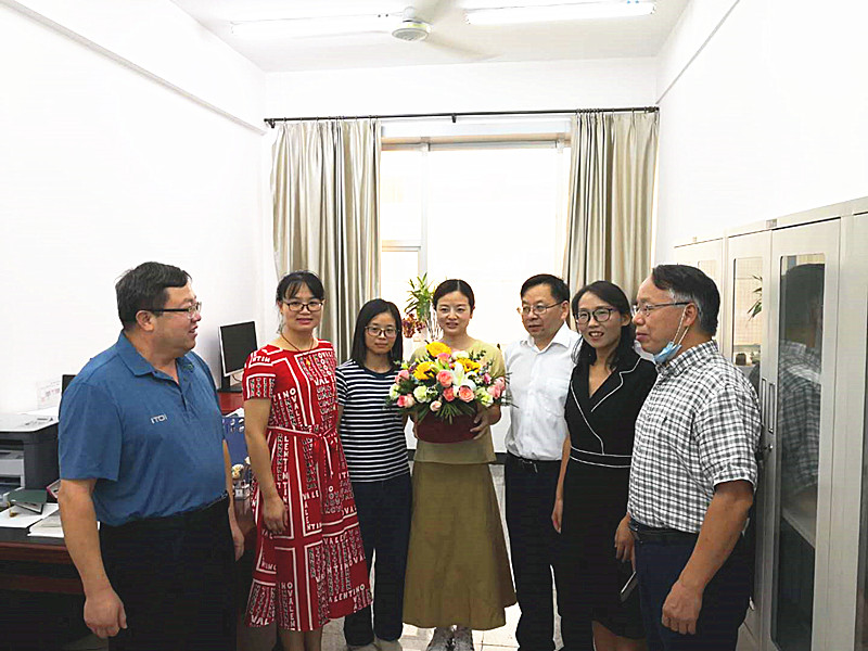 在第36个教师节来临之际,副董事长丁远坤、教务处处长李国元一行到公司看望慰问了公司第三届师德标兵路亚妮老师,并与公司青年博士教师们进行了亲切的交谈。