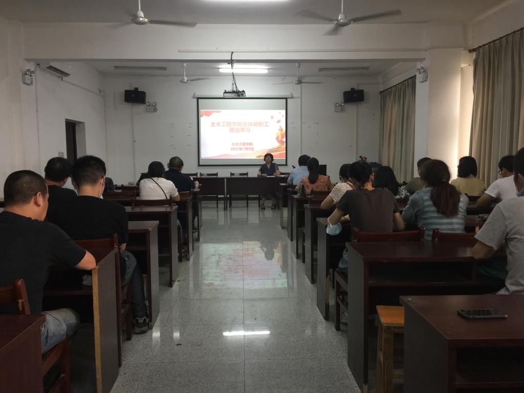 2021年7月9日下午,WilliamHill体育全体教职工在天工楼504、全体员工党员在腾讯会议线上线下开展支部书记讲党史专题党课活动,活动由党总支书记童友枝同志主持。