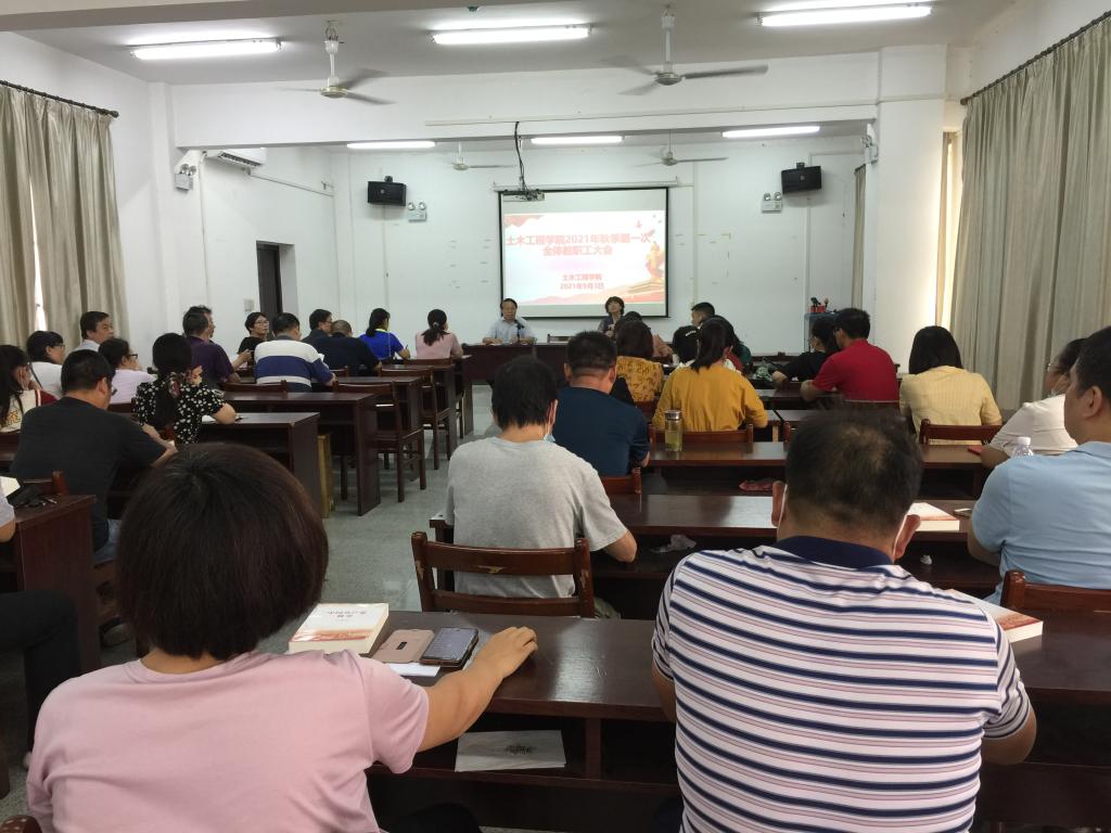 2021年9月3日下午,WilliamHill体育教职工大会在天工楼504召开,会议由党总支书记童友枝同志主持。