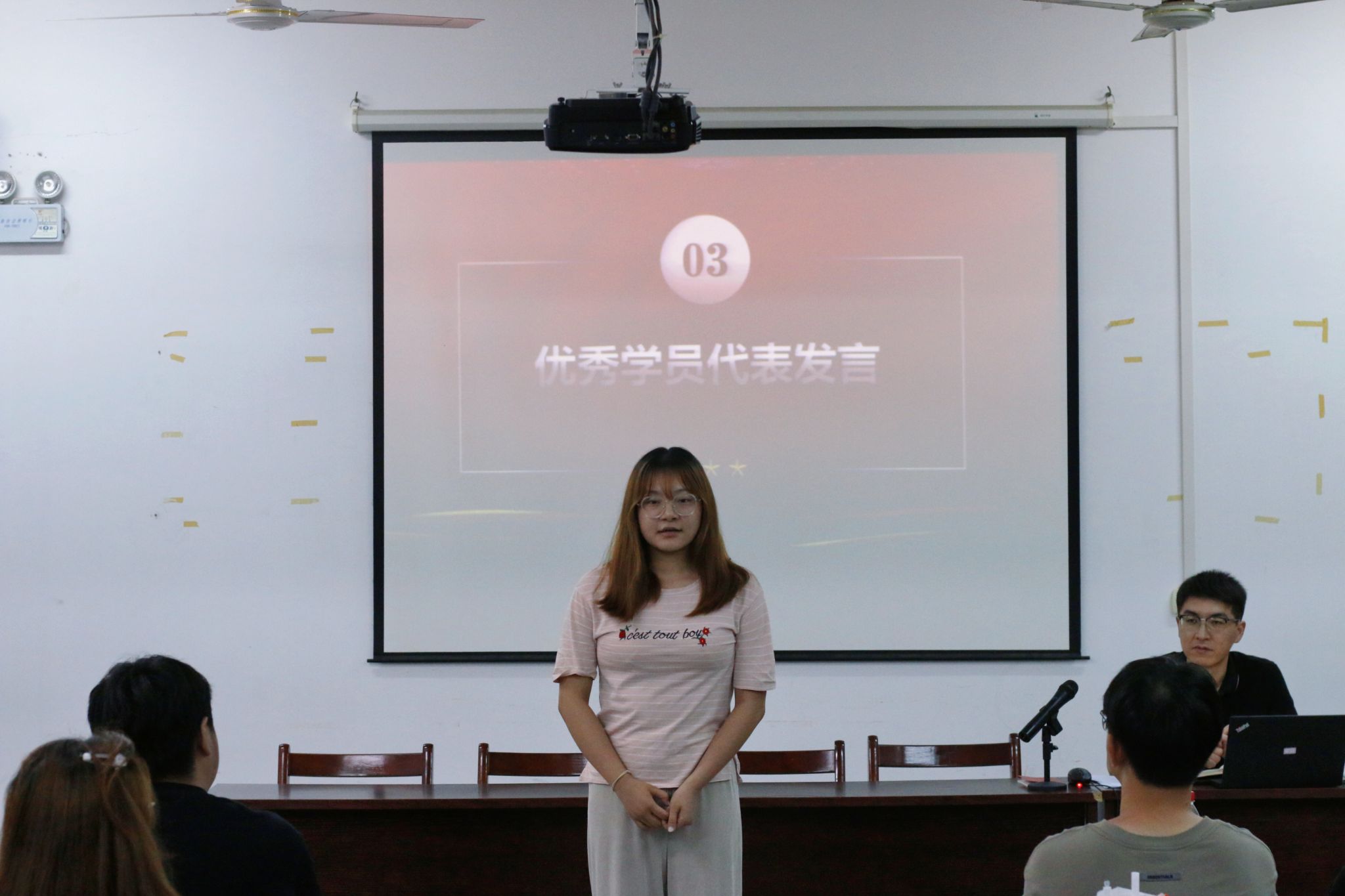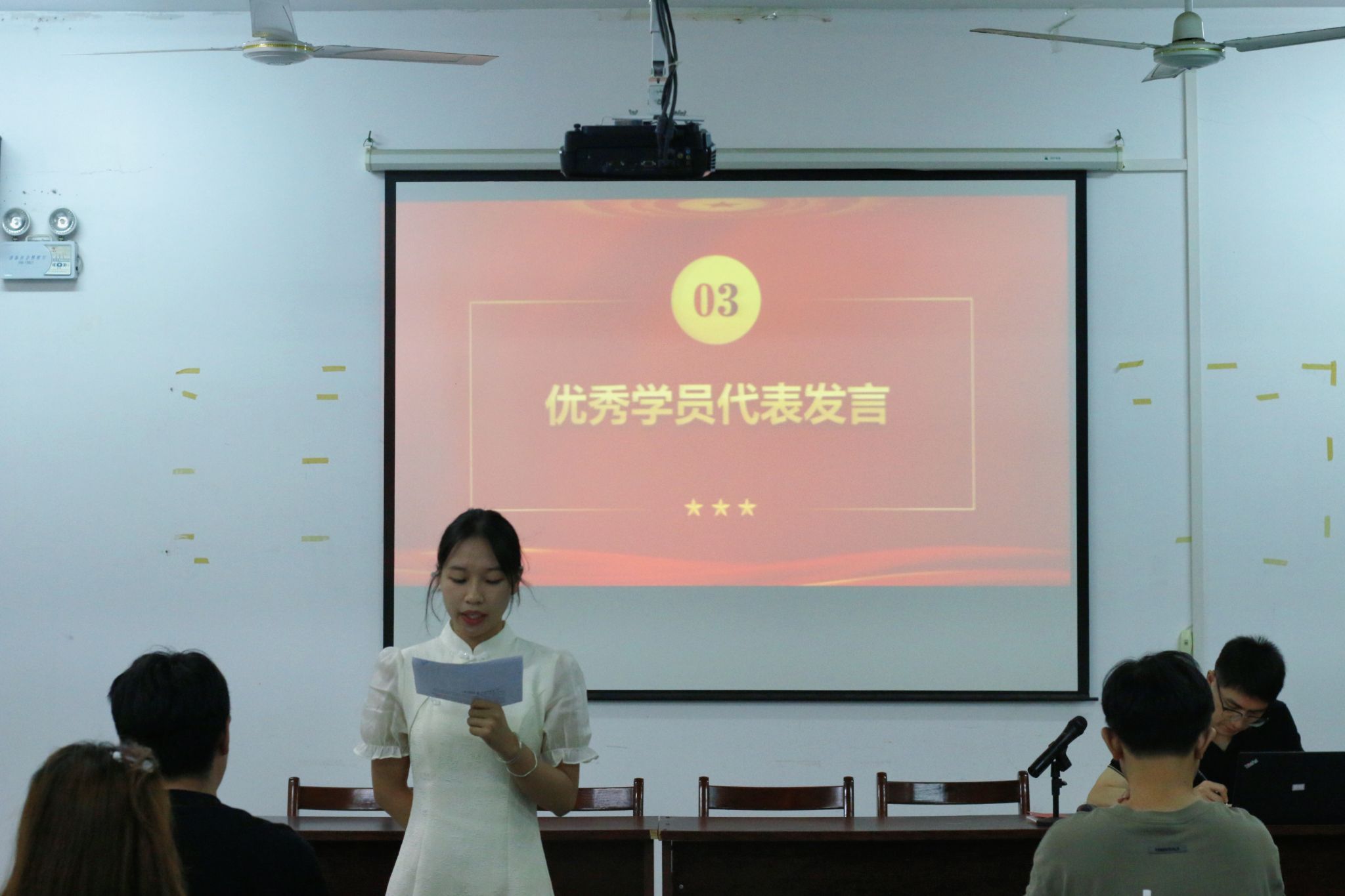 结业典礼上,优秀学员代表刘鹏飞、许晴、郭亦楠、刘骁驰等4位同学进行了发言。他们纷纷表示,自己在此次培训学习活动中更深刻地理解了党的理论知识,更加坚定了入党的决心与信念,更加端正了自己的入党动机,在以后的学习、工作、生活中,将保持高度的责任心和使命感,严格按照党员的标准要求自己,以饱满的热情努力奋进,以优异的成绩,接受党组织的考验,用坚定的行动来践行不悔的誓言。