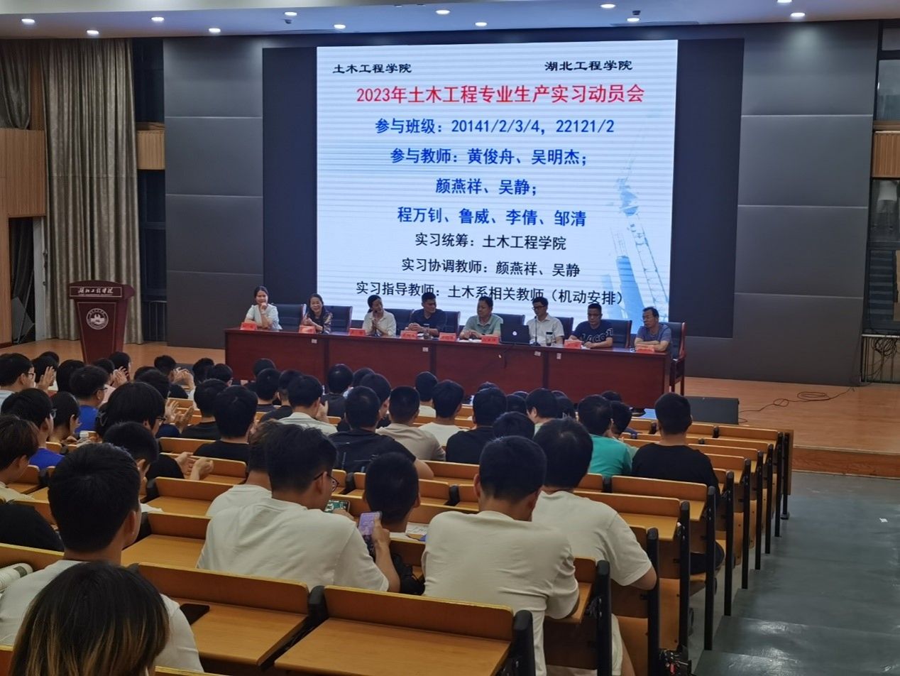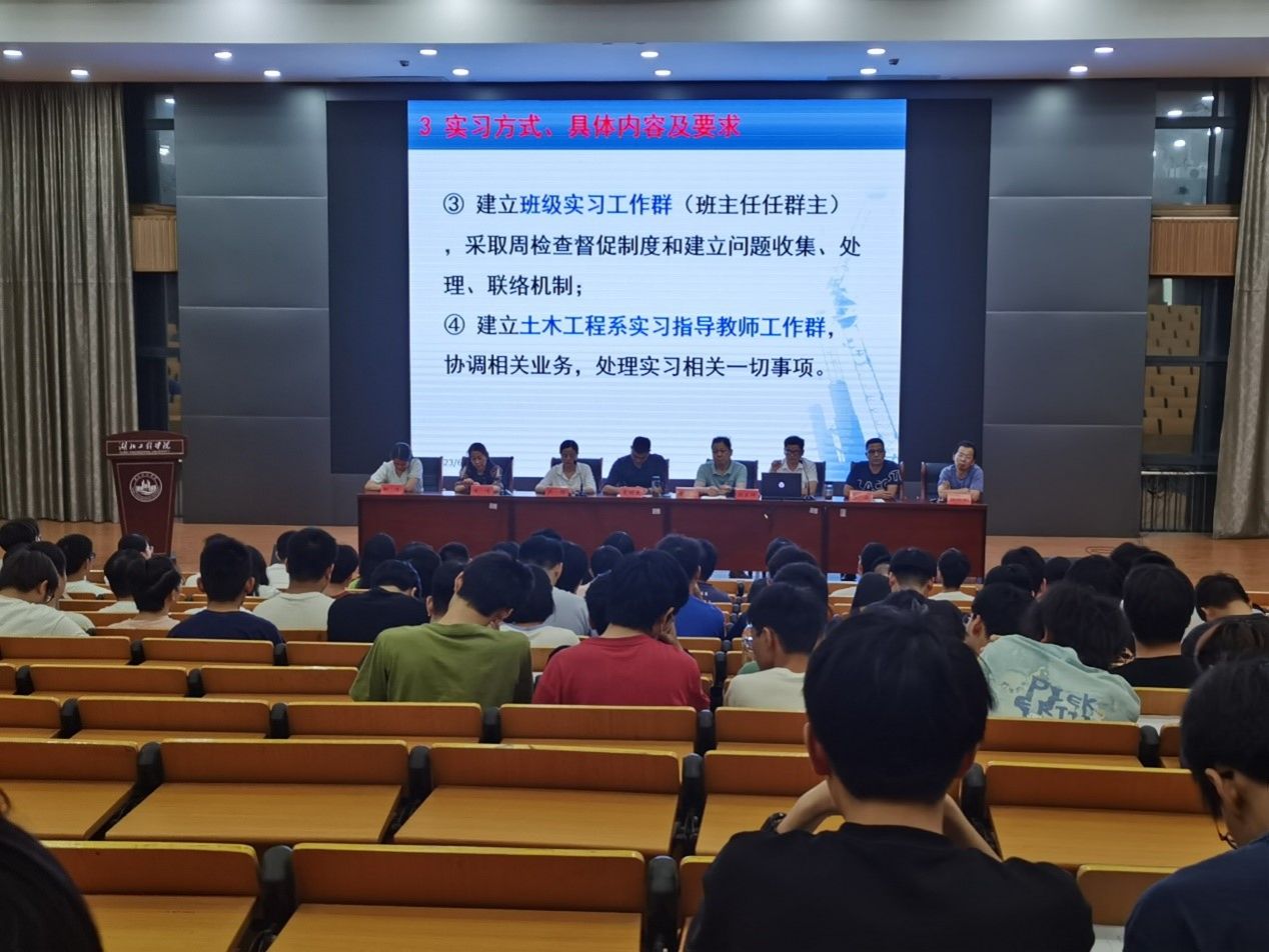 2023年6月19日晚在天成楼315报告厅,土木工程系召开土木工程专业生产实习动员大会。工程实践和社会服务专家、优秀教师代表黄俊舟老师,建筑学系主任吴明杰,土木系支部书记吴静,土木系主任颜燕祥,土木系大三年级班主任鲁威老师、李倩老师、程万钊老师、邹清老师及各实习班员工221人参加此次大会,会议由土木系支部书记吴静主持。