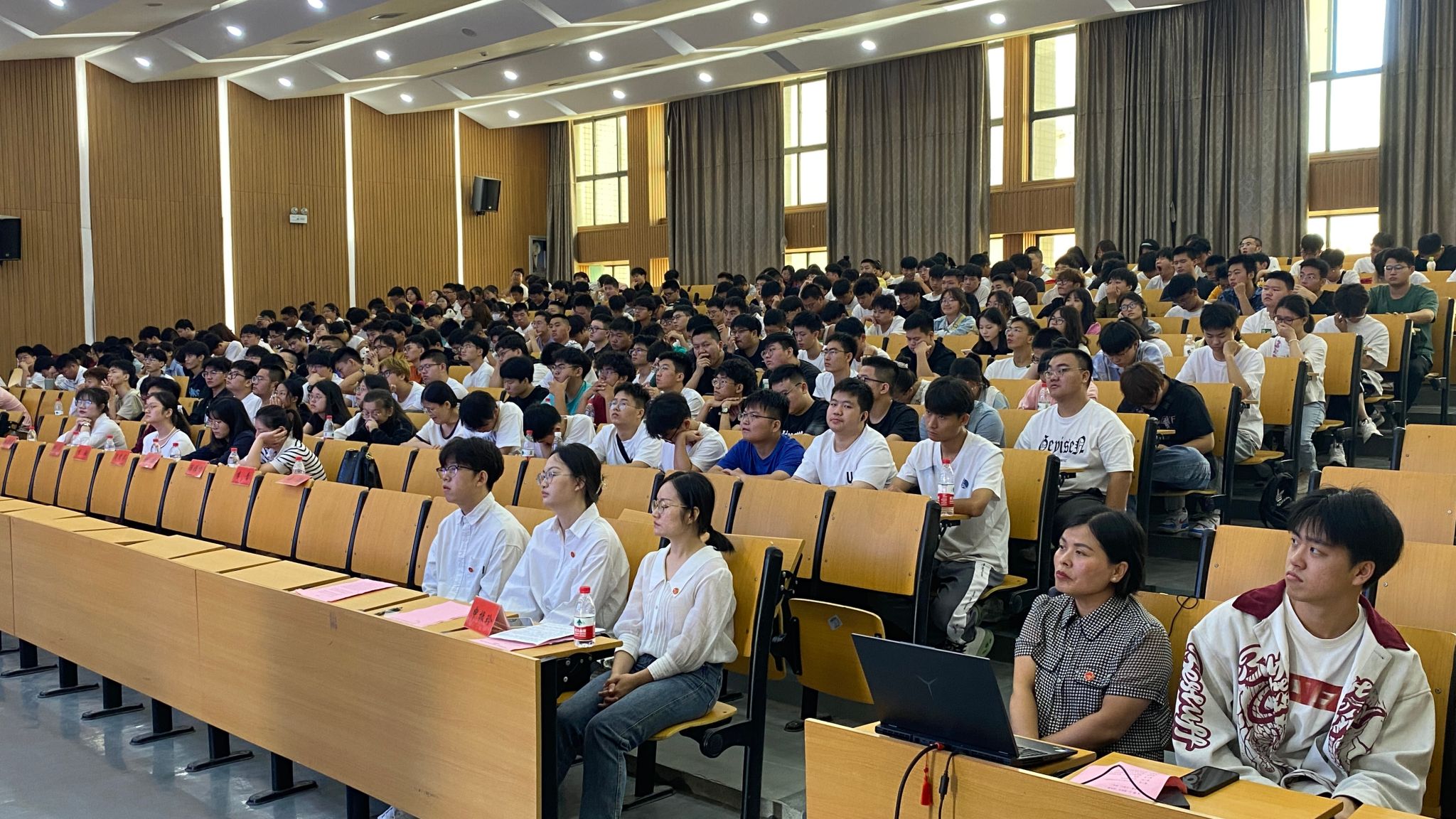 经理路亚妮代表公司向2023级新同学们表示热烈的欢迎,对辛勤培育同学们成长的父母、亲友、师长表达亲切的问候和真诚的感谢。她对全体新生提出殷切希望:一是明大学之道,树立家国情怀;二是立经世之志,担当复兴重任;三是修济民之学,扎根祖国大地。她还分别从公司概况、专业基本情况和发展前景、人才培养、学科竞赛、员工就业、未来发展等方面为全体新生讲了“开学第一课”。她勉励同学们要用脚步丈量祖国大地,用眼睛发现中国精神,用耳朵倾听人民呼声,用内心感应时代脉搏,促进德智体美劳全面发展,做一个能吃苦肯奋斗的实干家。