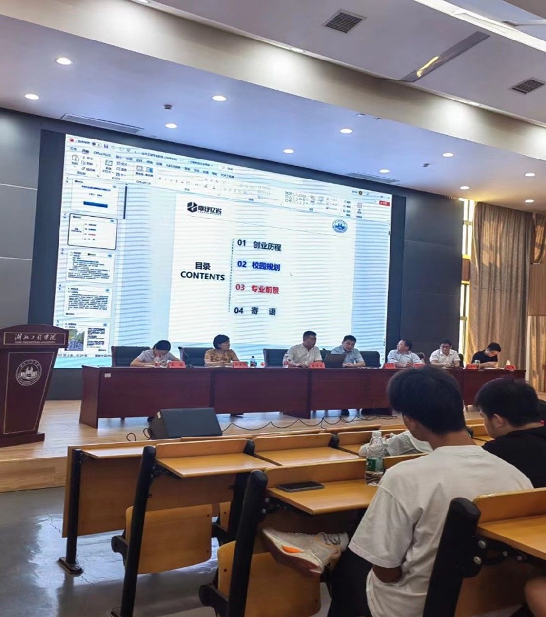 刘兴军老师和张艳杰董事长分别为新生介绍了土木工程专业的设计和施工方向职业发展轨迹及目标,让同学们对土木工程专业就业有一个正确的初步认识。重点为大家介绍了毕业后一般进入的单位或从事的工作方向等等。同时,刘兴军老师和张艳杰董事长又从国家战略规划、区域社会经济发展方面切入,为大家展现了土木工程专业的广阔前景。最后两位专家都真诚地为新生以及家长提出几点中肯的、确切的建议,并给予了新生诚挚的祝福。
