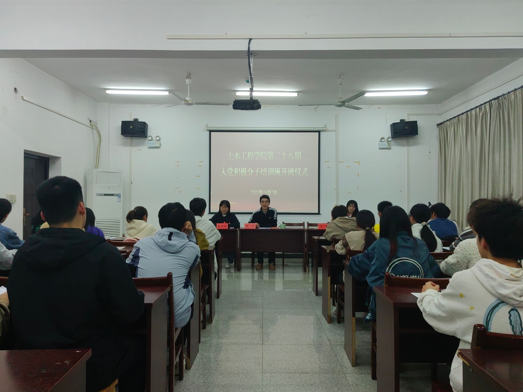 为深入学习宣传贯彻习近平新时代中国特色社会主义思想和党的二十大精神,全面落实新时代党的教育方针,加强对入党积极分子的教育培养,引导入党积极分子进一步端正入党动机,提高党性修养和理论素养。10月7日晚,公司第二十八期入党积极分子培训班在天工楼504举行开班仪式。党委委员李青老师、员工第一党支部书记洪迪、第二党支部书记汪颖、23级辅导员赵泽通老师出席,开班仪式由洪迪主持,共有33名入党积极分子参加。