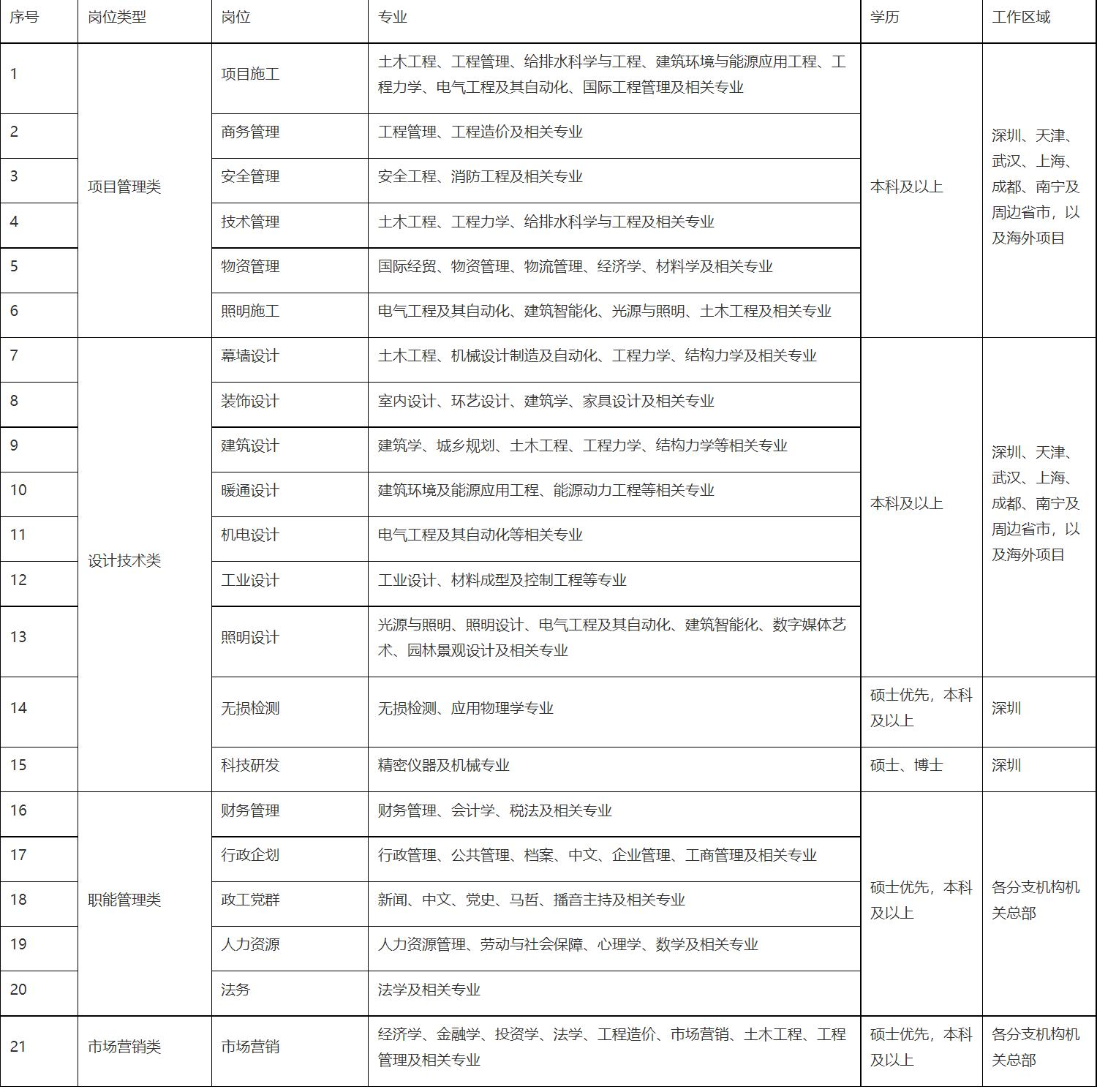 中建深圳装饰有限公司2022届校园招聘信息
